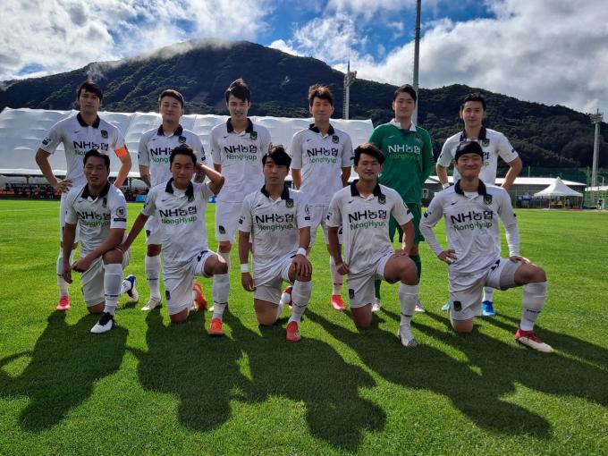 진주시민축구단은 초반부터 적극적인 공세를 펼치며 상대의 골문을 노렸다. 전반 3분 만에 심지훈이 선취골을 기록했으며 전반 16분 김지민이 완벽한 패스 플레이를 통해 두 번째 골을 넣었다.