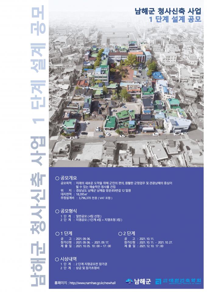 이어 "새롭게 지어지는 군청사는 군민의 화합과 미래를 고민하는 발전적 과정, 축복의 장으로 남해의 새로운 랜드마크이자 건축적 문화자산이 될 수 있는 설계안을 선정할 것"이라고 덧붙였다.