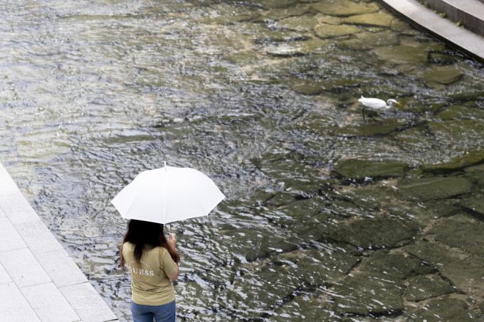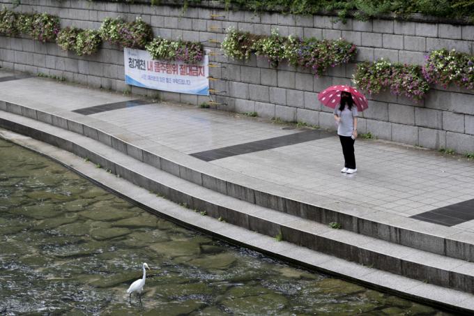 가을비 내리는 24일 오후 서울 청계천에서 우산 쓴 시민들이 오가고 있다.