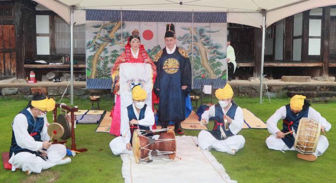 신부 심지미 씨는 미국 국적으로 미국 명문 대학을 졸업하고, 현재 유럽에서 박사과정을 밟고 있다. 부부는 결혼을 준비하던 중 함양문화원에서 추진하는 전통혼례 소식을 접하고 양가 부모와 협의를 거쳐 이번에 전통혼례를 통해 부부의 연을 맺게 됐다.