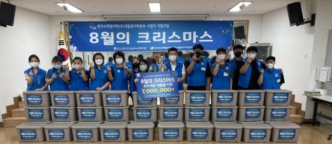 '8월의 크리스마스'는 울주군 남부노인복지관과 함께 매년 지역의 어려운 이웃에게 생필품 등 선물을 기부하는 새울본부의 사회공헌사업이다.