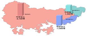 인구의 자연증감 분석 결과, 부·울·경 인구는 지난 2018년부터 꾸준히 자연감소(사망자가 출생아 수보다 많은 경우)하고 있다. 2018년 2113명, 2019년 5795명, 2020년 1만2700명으로 자연감소 폭도 점차 커지고 있다.