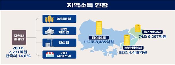 시도별 구성은 경남이 40.3%인 112조8485억 원, 부산 33%인 92조4448억 원, 울산 26.7%인 74조9297억 원이다.