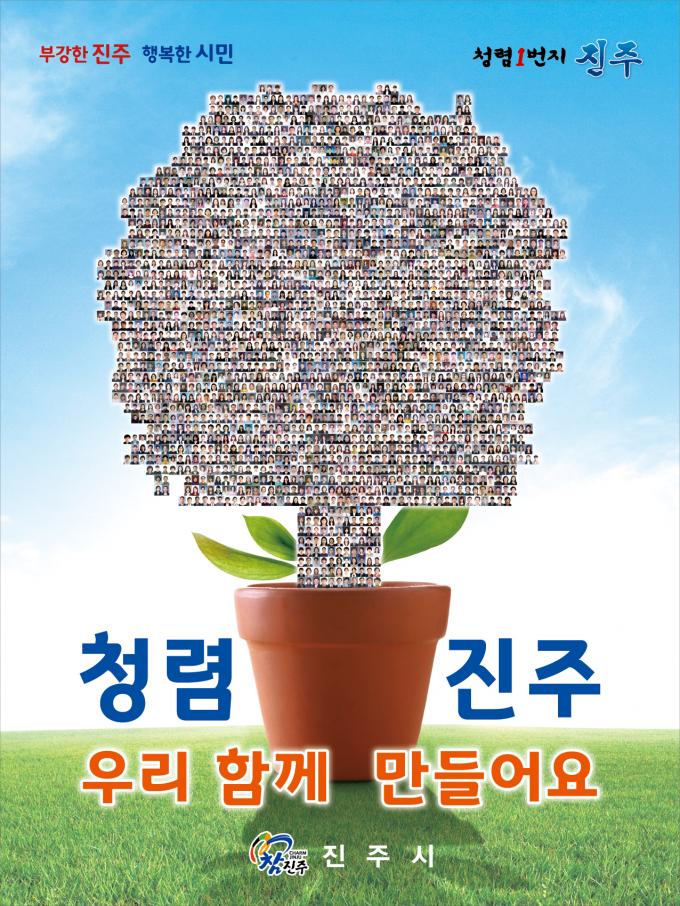 진주시는 지난 상반기에 처리한 인·허가, 공사, 물품·용역, 보조금 지원 등 5개 분야 2600여 민원인에게 시장의 청렴 의지를 담은 서한문을 보내는 한편 2000여 모든 직원에는 모자이크식으로 디자인한 청렴 포스터를 제작해 배부했다.