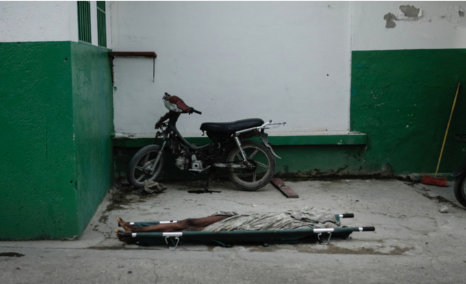 25일(현지시간) 아이티 레카예의 한 종합병원 바닥에 시신이 방치돼 있다. [AP 뉴시스]