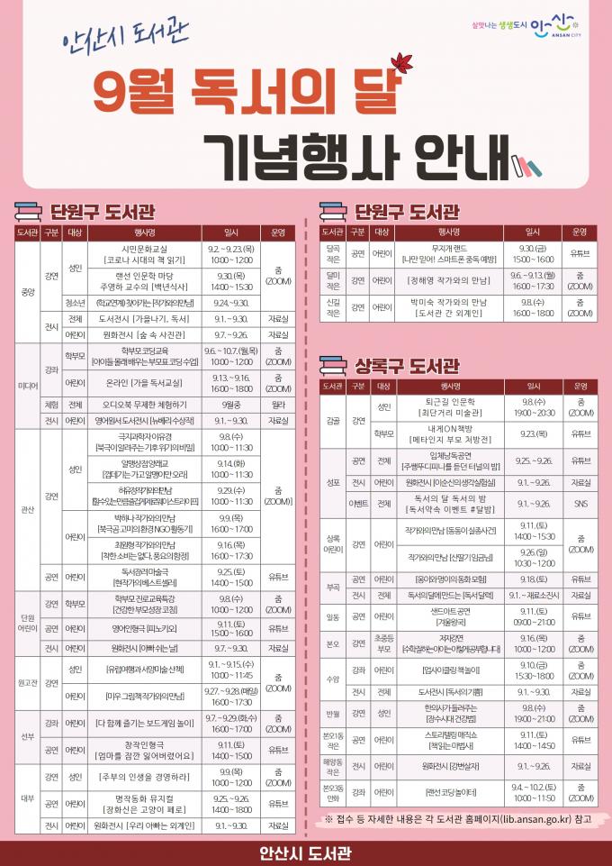 안산시민이라면 누구나 참여 할 수 있으며, 접수 등 자세한 사항은 안산시 도서관 홈페이지(http://lib.ansan.go.kr)를 참고하면 된다.