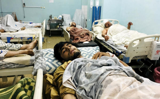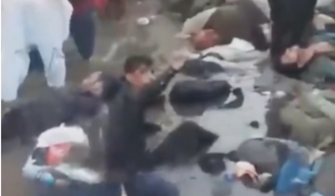 아프가니스탄 카불 공항 외곽 연쇄 자살폭탄 테러 현장. 사상자들이 처참하게 쓰러져 있다. [AP 뉴시스]