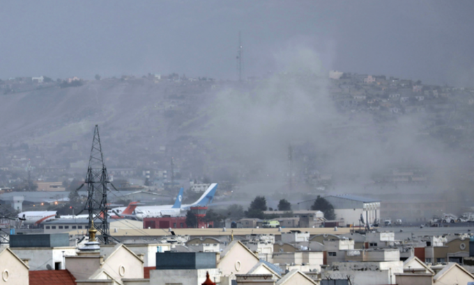 26일(현지시간) 자살 폭탄테러가 발생한 아프가니스탄 카불 공항 외곽. 이번 테러는 하미드 카르자이 국제공항 애비 게이트와 인근 배런 호텔에서 각각 발생, 아프간인 최소 60명이 숨지고 143명이 다쳤다. 미군도 13명 숨지고 18명 부상했다. 이슬람 무장조직 IS는 이번 폭발이 자신들의 소행이라고 주장했다. [AP 뉴시스]