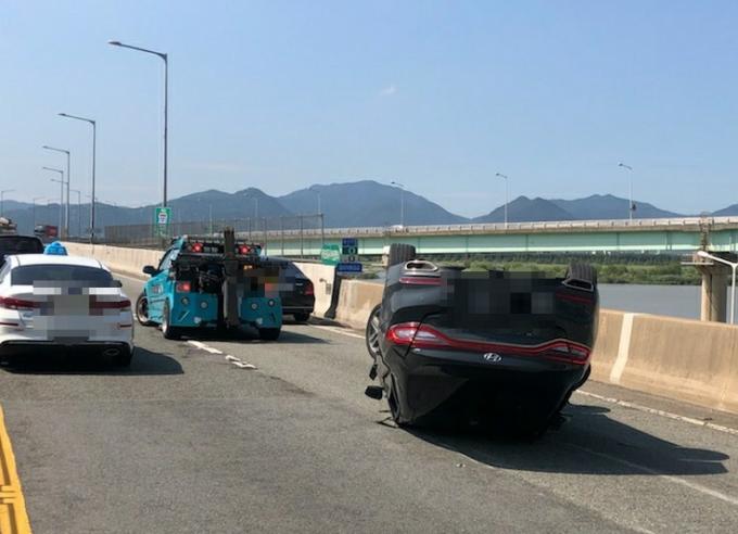 사고 충격으로 그랜저 차량이 전복되면서 다시 1차로를 달리던 쏘렌토 차량을 추돌했다. 전복된 차량의 40대 운전자와 쏘렌토 차량 동승자는 목 등을 다쳐 병원으로 옮겨졌다.