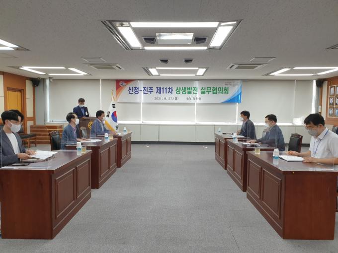 경남 진주시와 산청군이 지난 27일 진주시청에서 상생발전협력 11차 실무협의회를 열어 진행 중인 사업을 점검하고 지역 현안에 대해 논의했다.