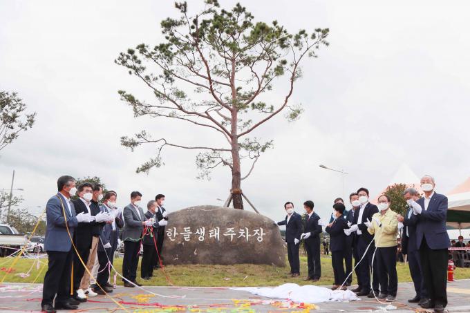 '한들 생태환경 주차장'은 2만9587㎡ 부지에 차량 481대를 동시 수용할 수 있다. 주민편의 건축물 2동과 함께 교목·관목·초화류 등 3만7000본이 심겨진 미세먼지 차단 숲까지 갖추고 있다.