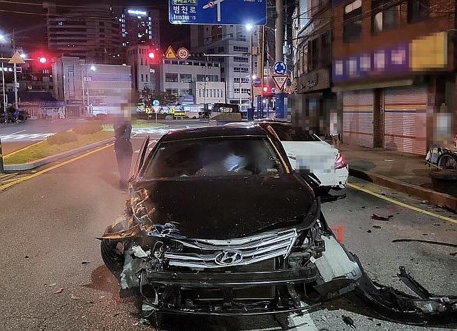 4일 부산경찰청에 따르면 이날 오전 2시28분께 부산진구 범천동 신암로에서 고등학생 A 군이 몰던 그랜저가 도로 가장자리에 주차된 차량 4대를 들이받았다.