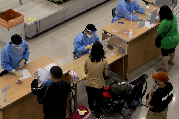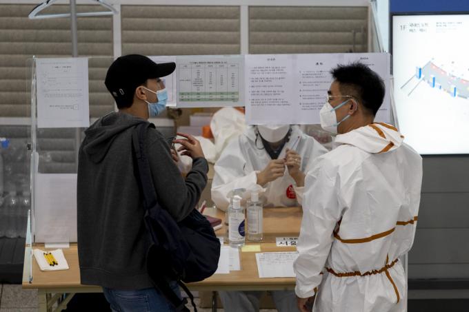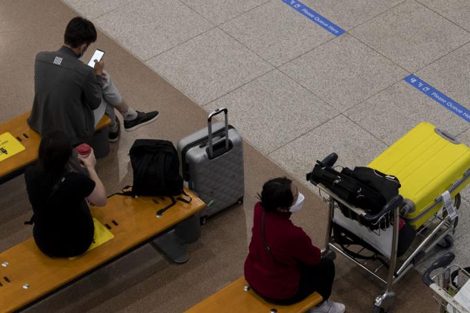 코로나19 새로운 변이 '뮤'가 지난 3일 국내에서 처음 발견된 가운데 6일 인천국제공항 입국장에서 방역관계자들이 입국자 안내를 하고 있다. '뮤'는 올 1월 콜롬비아에서 처음 발견됐다.