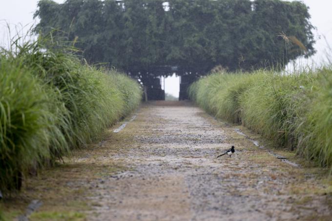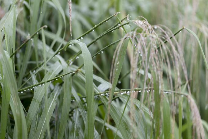 억새에 이슬 대신 맺힌 빗방울.