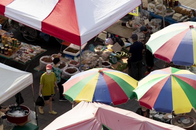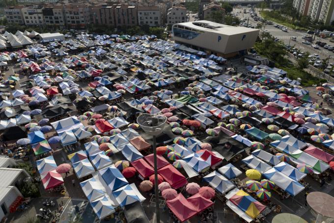 추석 연휴를 아흐레 앞둔 9일 경기 성남. 국내 최대 민속 오일장인 모란시장을 찾은 시민들이 장을 보고 있다.