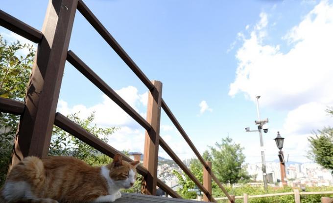 며칠동안 내리던 비가 그치고 구름이 걷힌 지난 8일 오후. 내리쬐는 햇빛에 나른한 것은 고양이도 마찬가지일까. 낙산공원 한편에 자리 잡은 고양이가 단잠에 빠졌다.