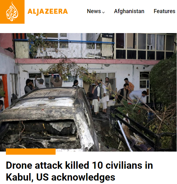 당시 미군의 드론 공격에 의한 민간인 사망 소식을 처음 전했던 알 자지라 방송은 이날 8월 29일 드론 공격은 호라산 IS(ISIS-K)가 자신들의 소행이라고 주장한 카불 공항 근처 자살 폭탄 테러로 13명의 미군 대원을 포함해 적어도 175명이 사망한지 며칠 만에 일어났다고 보도했다.