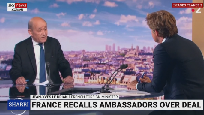 이를 두고 장-이브 르드리앙 프랑스 외교부 장관은 "뒤통수를 맞았다", "배신을 당했다"며 강한 논조로 미국과 호주를 비난해왔다.