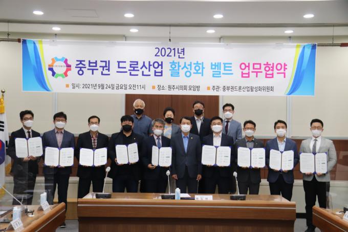 중부권 드론산업 활성화를 위해 24일 오전 11시 원주시의회 모임방에서 다자간 협약식이 개최됐다.