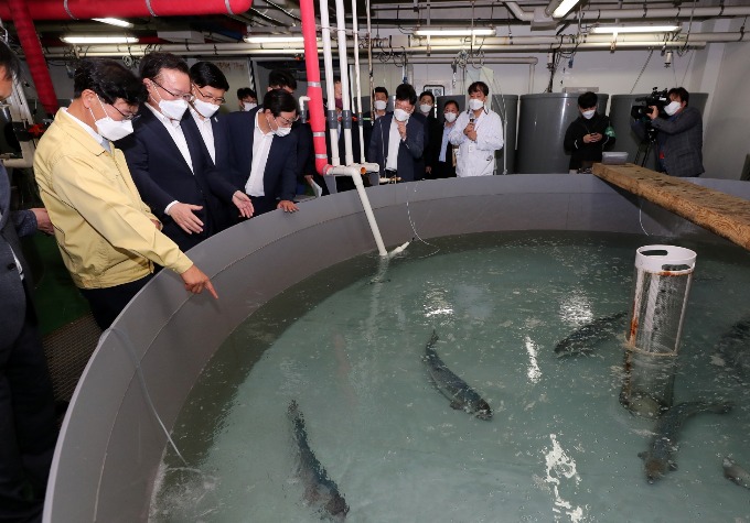 김부겸 국무총리는 29일 오후, 제4차 스마트양식 클러스터 사업 대상지로 선정된 강릉을 찾았다. 김 총리는 조성계획을 점검하고, 대서양연어 육상양식 등 양식 기술개발에 힘쓰고 있는 관계자들을 격려했다.