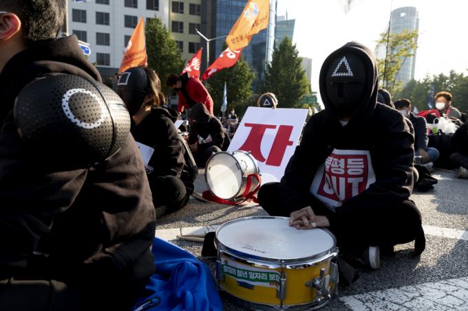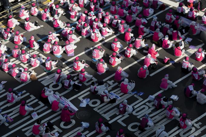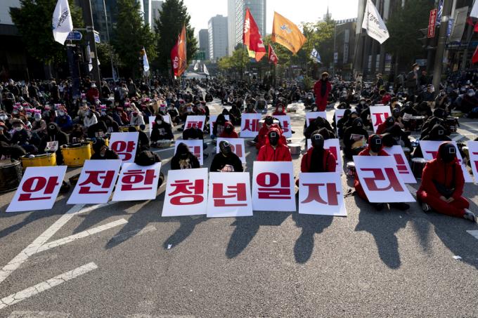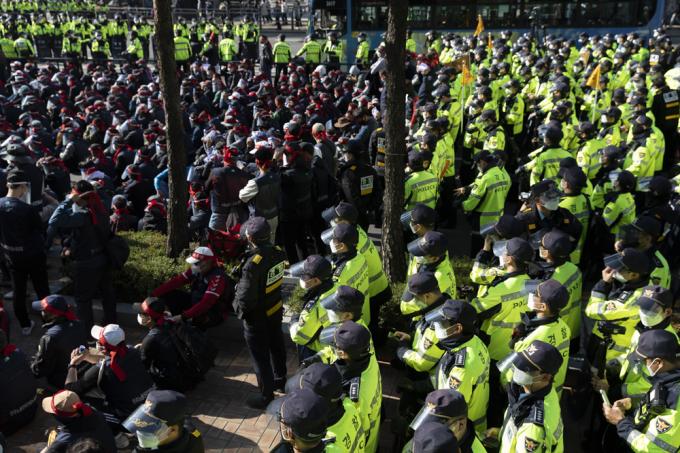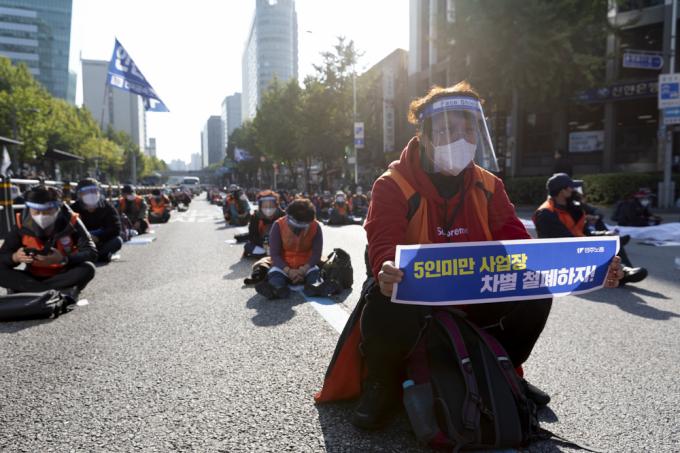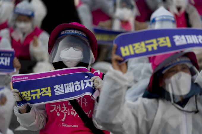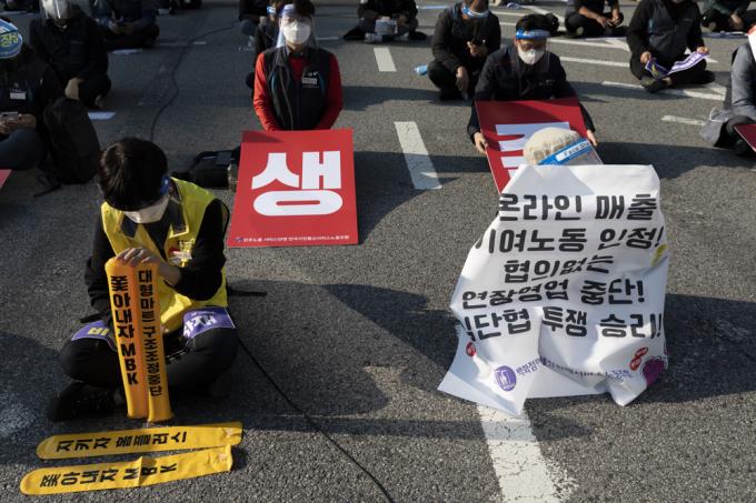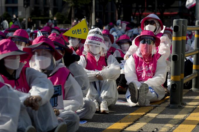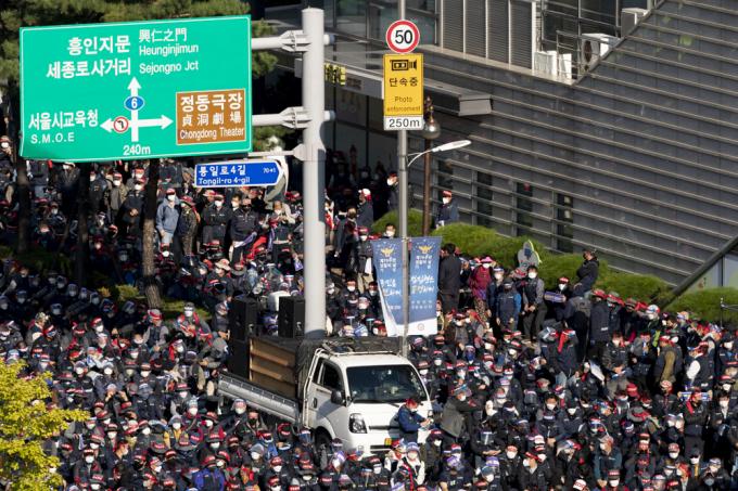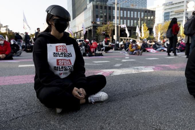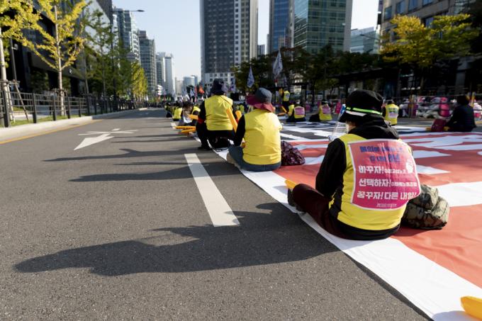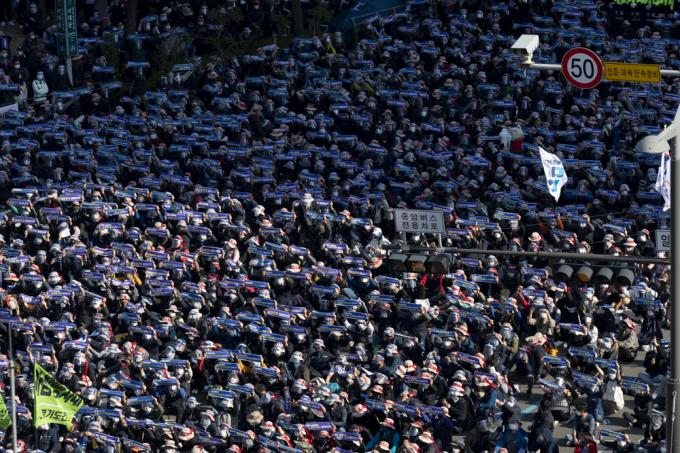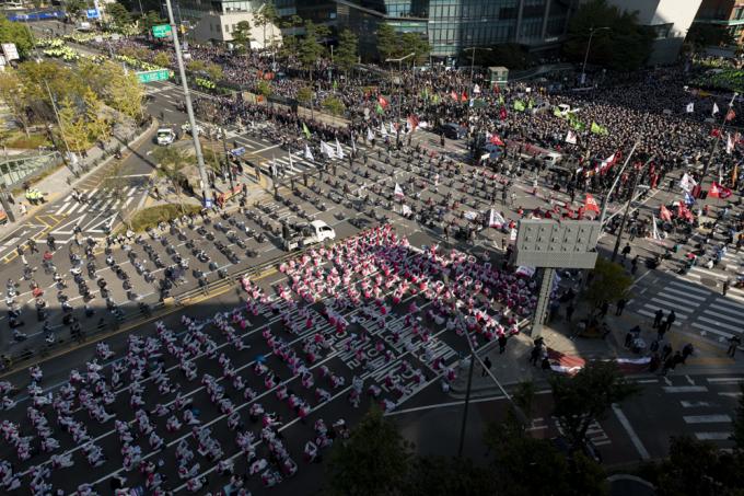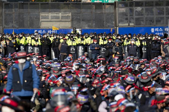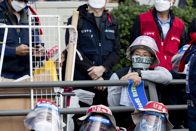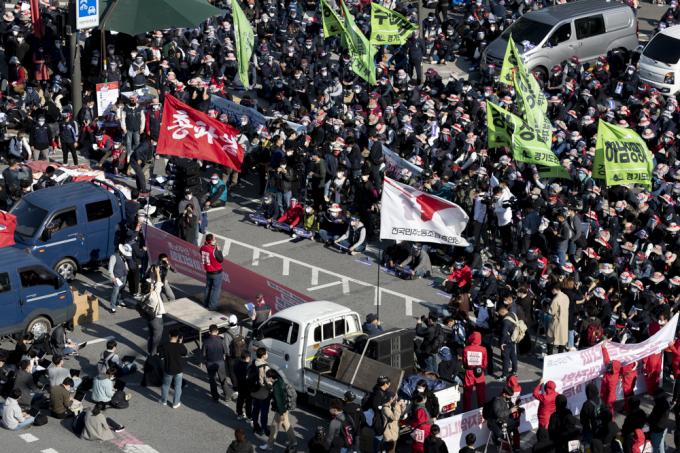 20일 서울 서대문역 사거리에서 민주노총 총파업 집회가 진행되고 있다.