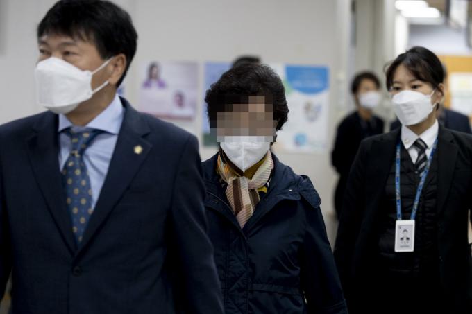 불법 요양병원을 운영하면서 수십억 원대 요양급여를 부정수급한 혐의를 받는 윤석열 전 검찰총장의 장모 최 모(74)씨가 26일 오전 서울 서초구 서울고등법원 2심 속행공판에 출석하기 위해 법정으로 향하고 있다.