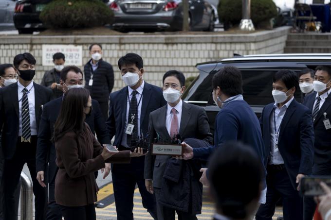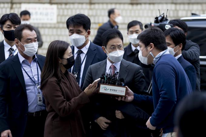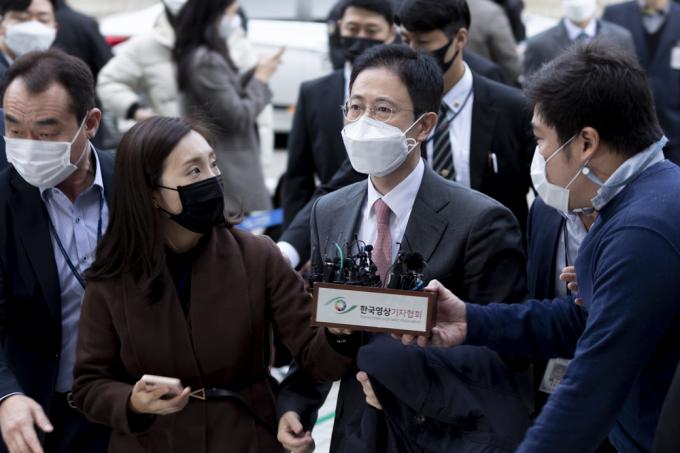 고발사주 의혹의 핵심인물인 손준성 전 대검찰청 수사정보정책관(현 대구고검 인권보호관)이 26일 서울 서초구 서울중앙지밥법원 영장실질심사에 출석하면서 기자들의 질문을 받고 있다.