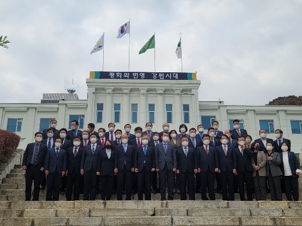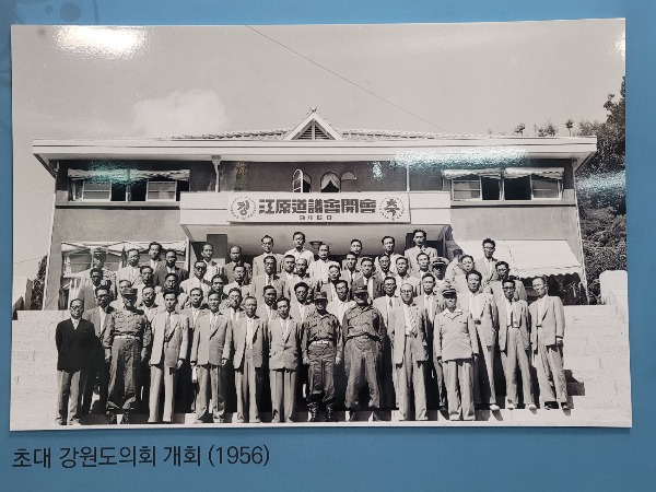 1959년 강원도의회는 개회 3주년을 맞아 도청 본관 앞 계단에서 기념 촬영을 했다. 60여 년이 흐른 지금, 그대로 그 자리를 지키고 있는 도청 본관과 돌계단에서 제10대 의원들은 그때 지방의회의 초심을 되새기고 앞으로의 다짐과 각오를 새롭게 다지는 의미에서 재현 사진을 촬영했다.