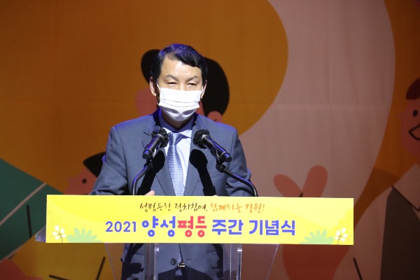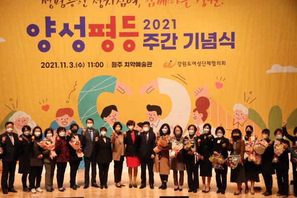 곽도영 강원도의장은 "현대사회에 들어와 여성 차별을 없애기 위한 많은 정책과 사업 그리고 교육이 이어지고 있다. 많은 사람들의 인식이 개선됐지만 오랜 시간 이어온 남성 중심의 문화는 아직도 우리 주위에 많이 남아 있다"며 "오늘 함께 한 분들이 사회적 불평등을 직간접적으로 경험했을 것이다. 그리고 이를 개선하고자 하는 의지와 노력이 있었기에 여성들의 사회참여가 확대되고 경제적·사회적·정치적 위상이 높아지고 있다"고 말했다.