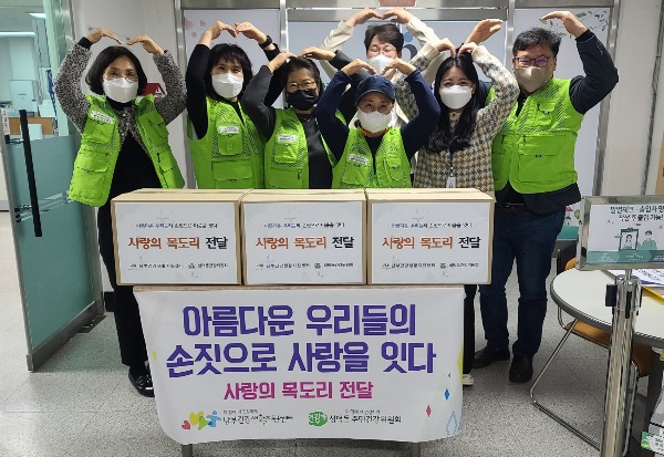 성덕동 주민건강위원회는 사랑방에서 매주 수요일 '사랑의 손뜨개 day'를 운영해왔다. 건강위원 20여 명이 참여해 손수 뜬 목도리로 이번 나눔 행사가 시행됐다.