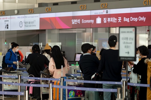 5일 제1터미널 출국장에서 시민들이 탑승 수속을 위해 이동하고 있다.