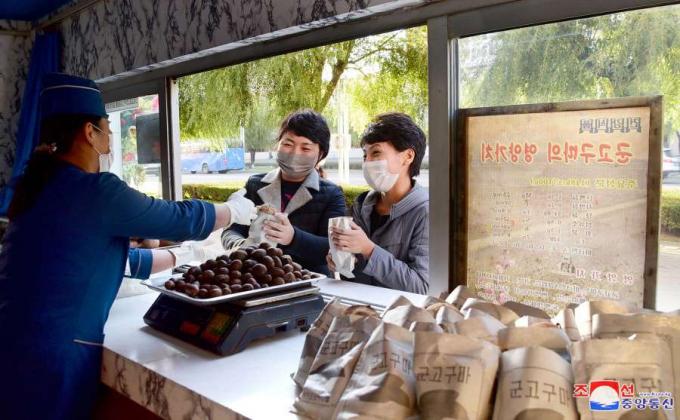 이 매체는 "김정은 동지께서 평양시 중심구역에 있는 기본도로 주변에 군밤∙군고구마 매대를 비롯한 야외매대들을 설치할 데 대하여 구체적으로 가르쳐 주셨다"면서 "바로 그런 뜨거운 사랑에 떠받들려 수도의 거리마다에 군밤, 군고구마 향기가 차 넘치게 된 것"이라고 보도했다.