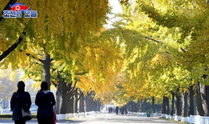 평양 시내의 노란 은행나무 가로수길과 그 너머로 보이는 보통문, 그리고 마스크를 썼지만 가을 정취를 누리는 시민들의 표정은 밝아 보였다. 호수가에 앉아 평양의 만추를 캔버스에 담는 한 시민의 모습은 여유롭다.