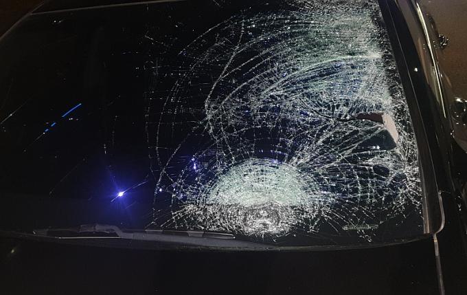 ▲ 17일 아침 해운대 길가에서 보행자를 들이받아 파손된 가해차량 유리창. [부산경찰청 제공]