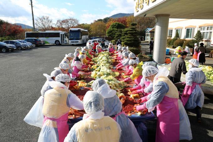 봉사활동 참석자들은 김장 비용 500만 원을 후원한 뒤 1200포기의 절임배추로 김장김치를 만들어 포장하는 정성을 보였다.