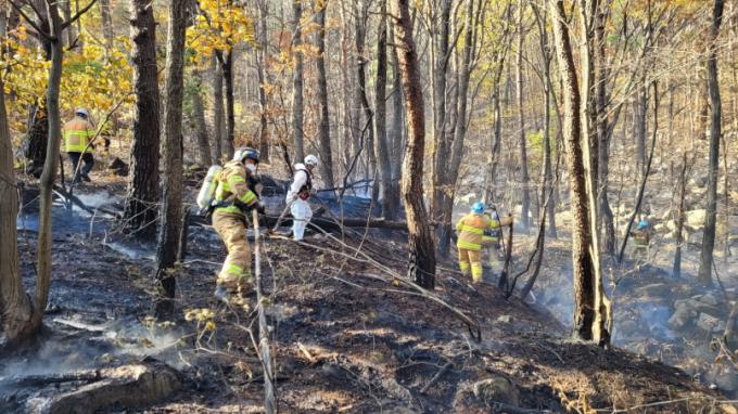 울산 울주군 웅촌 와지공단 뒷산에서 화재…임야 240평 태워