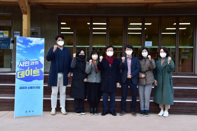 이날 데이트에 참석한 회원들은 조 시장에게 월아산 국가정원 추진의 구체적인 계획을 묻고, 맨발 산책로 조성과 함께 자원재활용 정책과 관련된 교육 및 업사이클링 활동 지원 등을 건의했다.