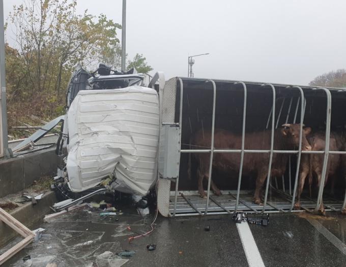 이 사고로 화물차가 왼쪽으로 쓰러지면서, 화물차 운전자(60대)가 숨졌다. 화물차에는 소가 실려 있었으나, 별다른 이상이 없었다.