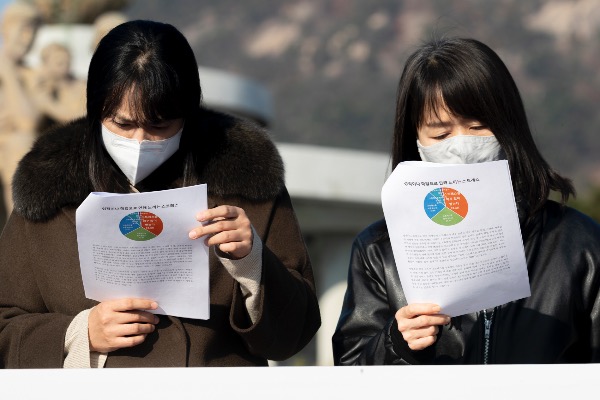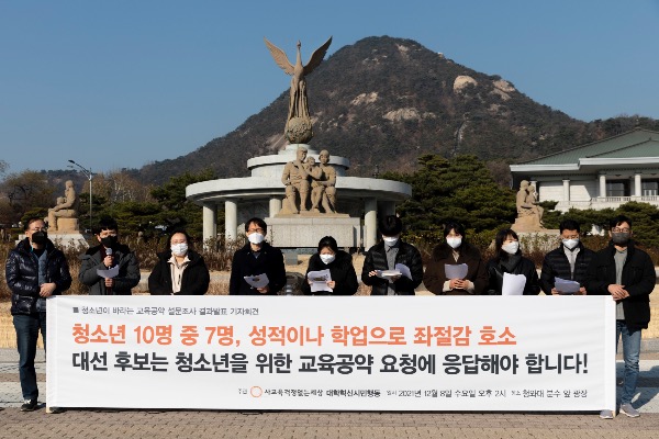시민단체 '사교육걱정없는세상'이 8일 서울 종로구 청와대 앞에서 '청소년이 바라는 교육공약 설문조사 결과 발표' 기자회견을 하고 있다.