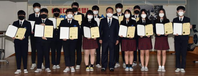 부산시교육청은 김석준 교육감이 13일 오전 수영구 망미중학교를 방문해 학생들에게 교육감 표창장을 수여하고, 학생들의 선행을 격려했다고 밝혔다.