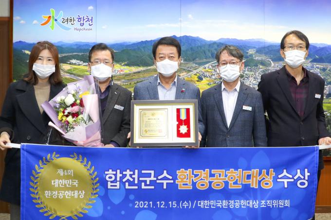 이번 시상식은 (사)환경보전대응본부와 환경감시 국민운동본부 주관으로 지구온난화방지와 환경보전에 기여한 개인이나 단체를 선정해 환경공헌대상을 수여하는 행사. 이날 합천군수 등 5개 지자체장이 수상했다.