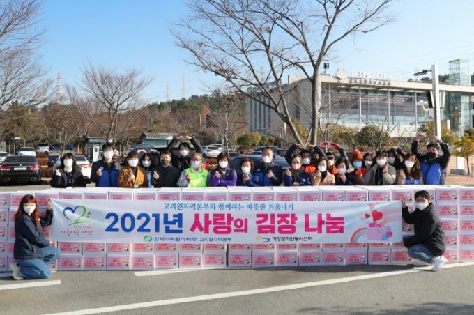 예년의 경우 직접 김치를 담그는 행사를 벌였지만, 이날은 코로나19 확산세를 감안해 완제품을 구매해 가정에 배달하는 방식으로 진행됐다.