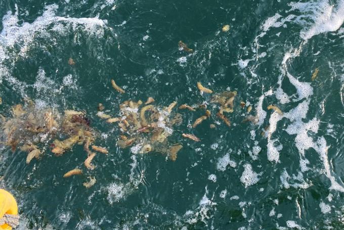 이번에 방류한 어린해삼은 어미 관리를 통해 자가 생산된 후 식물플랑크톤·배합사료 등을 먹여 1∼7g 크기의 건강한 해삼으로 성장시킨 것이다.