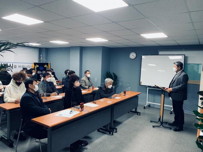 김남룡 회장은 주민 주도형의 뉴딜사업과 마을기업의 활성화를 통한 지역 개발과 발전을 설명하고, 참석자들과 거제시의 도시재생에 대해 토론하는 시간을 가졌다.