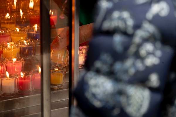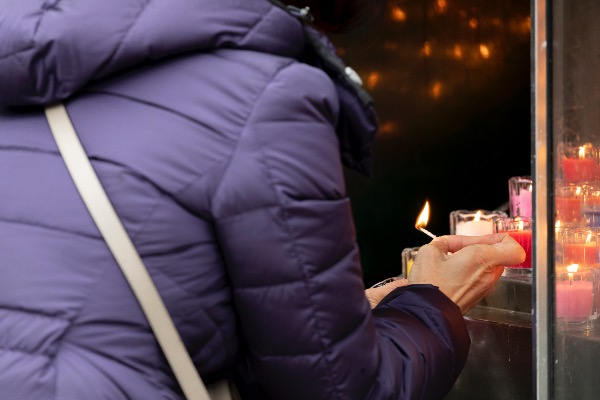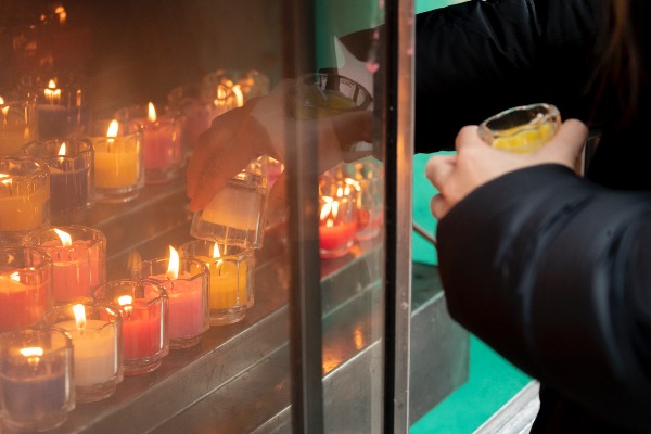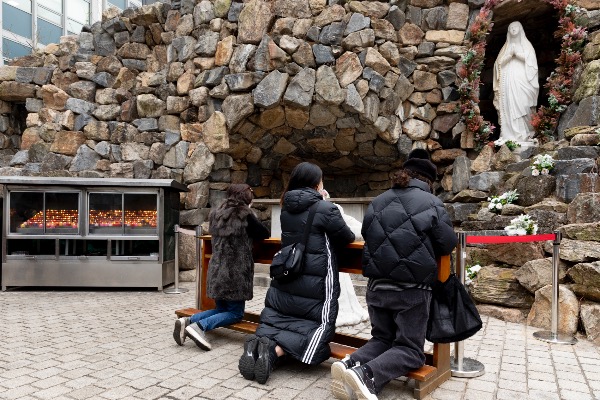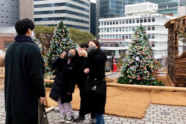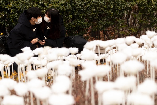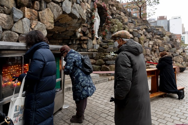 크리스마스 이브인 24일 서울 명동성당에서 청춘 남녀가 손을 맞잡고 대화하고 있다.