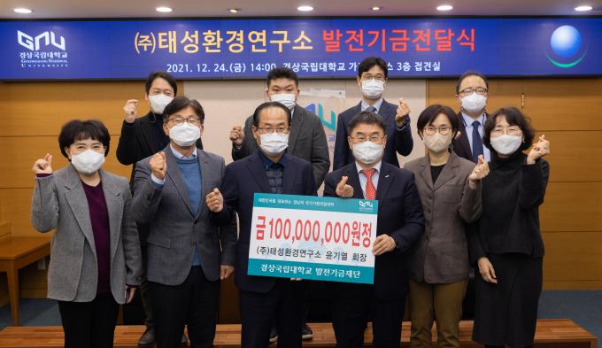 이날 발전기금 전달식에는 권순기 경상국립대 총장과 윤기열 태성환경연구소 회장 등 10여 명이 참석했다.