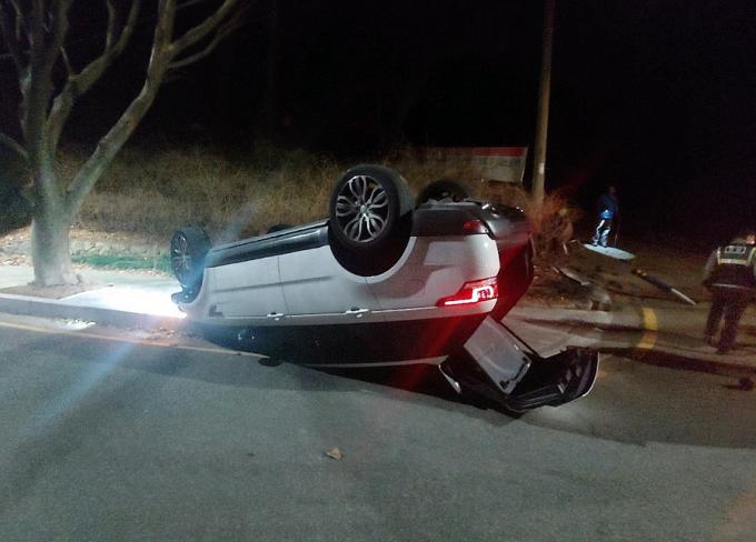 ▲ 28일 밤 부산시 남구 용호동 이기대공원로에서 발생한 승용차 전복사고 현장. [부산경찰청 제공]