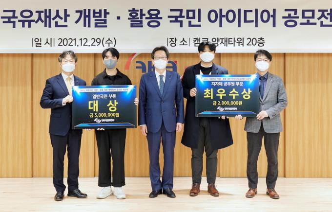 캠코는 공모주제 적합성과 아이디어 혁신성 등을 기준으로 실무자 및 외부 전문가 심사를 거쳐 우수 아이디어 13건(일반국민 10건, 지자체 공무원 3건)을 선정하고, 캠코 사장상과 함께 총 상금 2450만 원을 전달했다.