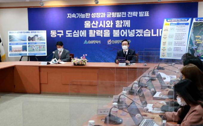 이날 발표는 '울산의 지속가능한 성장과 균형발전 전략'이란 캐치프레이즈로 송 시장이 5개 구·군을 순회하며 지역 발전 방향을 논의하는 자리에서 이뤄졌다.
