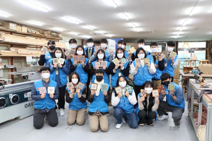 이들은 이날 울산 북구에 위치한 나무그루 공방에서 목공 냄비받침을 제작해 이를 기부하고, 공룡발자국 공원에 들러 정화활동을 벌였다.